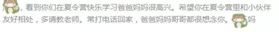 1、欢迎爸爸妈妈继续给我们留言,我们会将您的心意捎给孩子们,我们也会适当地通过视频为您呈现孩子们在夏令营的生活!让我们一起,家校连心,共同呵护孩子卓越成长吧!
