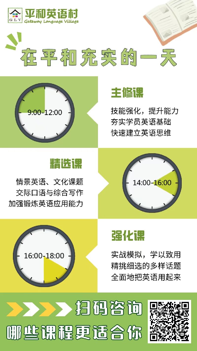 推荐平和英语村的四维精英课程,它让学员在纯英语的环境搭建英语思维,培养阅读素养与国际领导力,提高21世纪人才所应具备的 “批判性思维,创造性,沟通和协同合作”的能力,让每位学员在快乐学习中提高英语应用能力,成为高能人才。所有的知识积累、语言技能学习都是为了“用英语”,“学-练-用”的课程设置闭环,将英语自然融入生活,成为学生逐步成才的沟通武器。